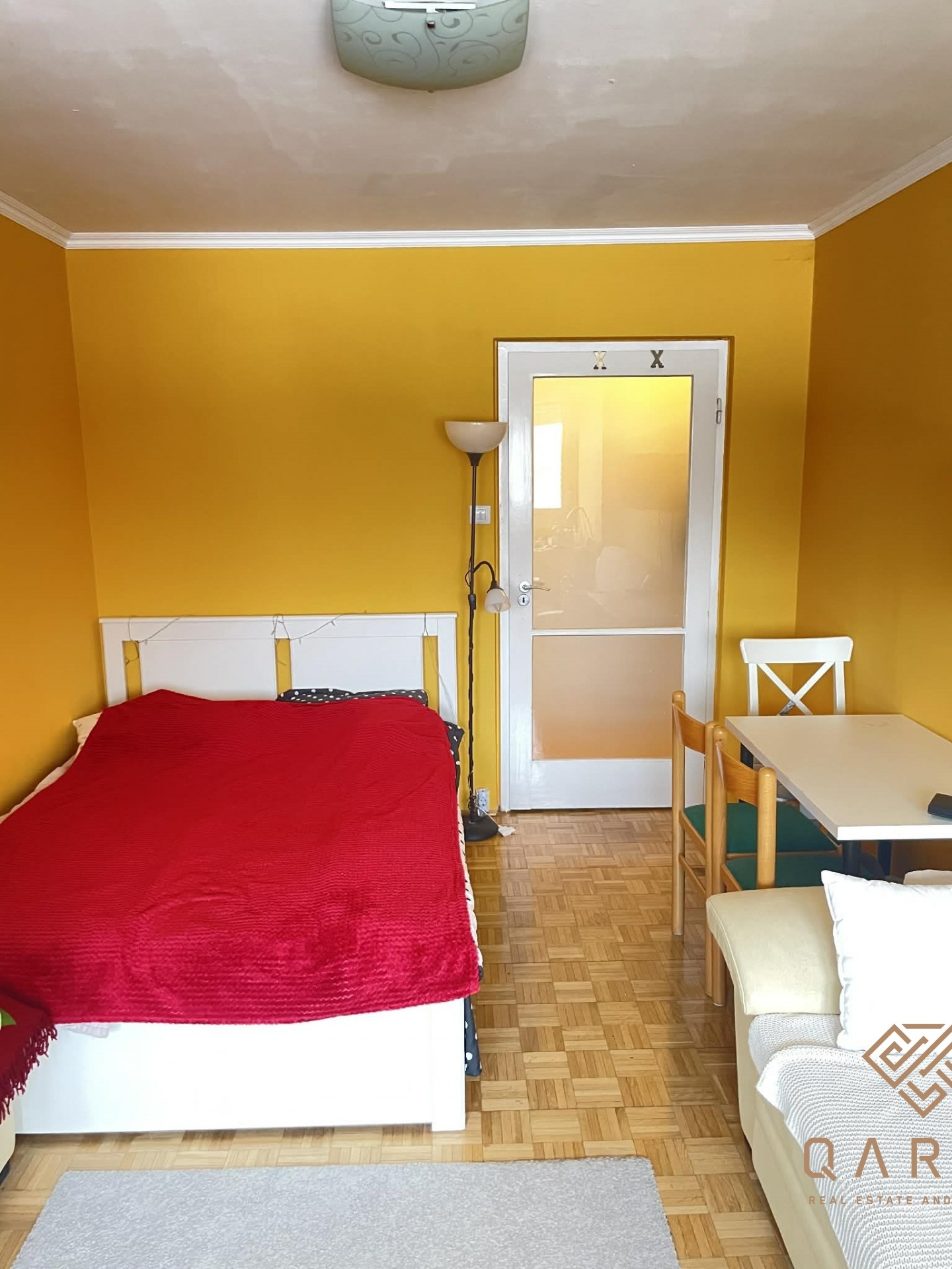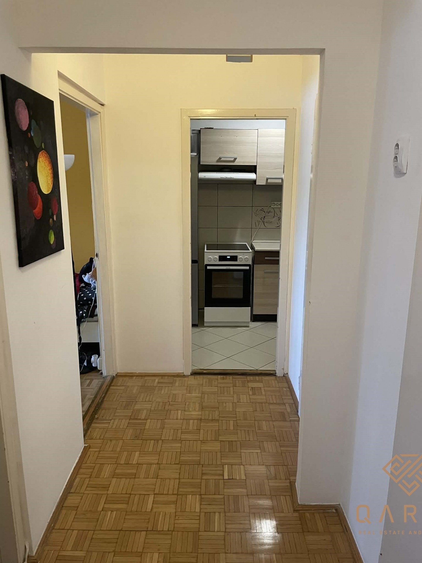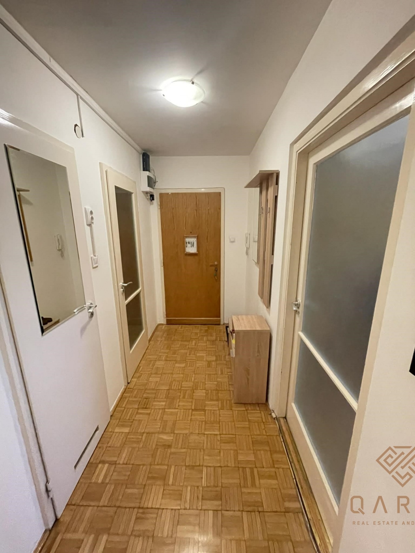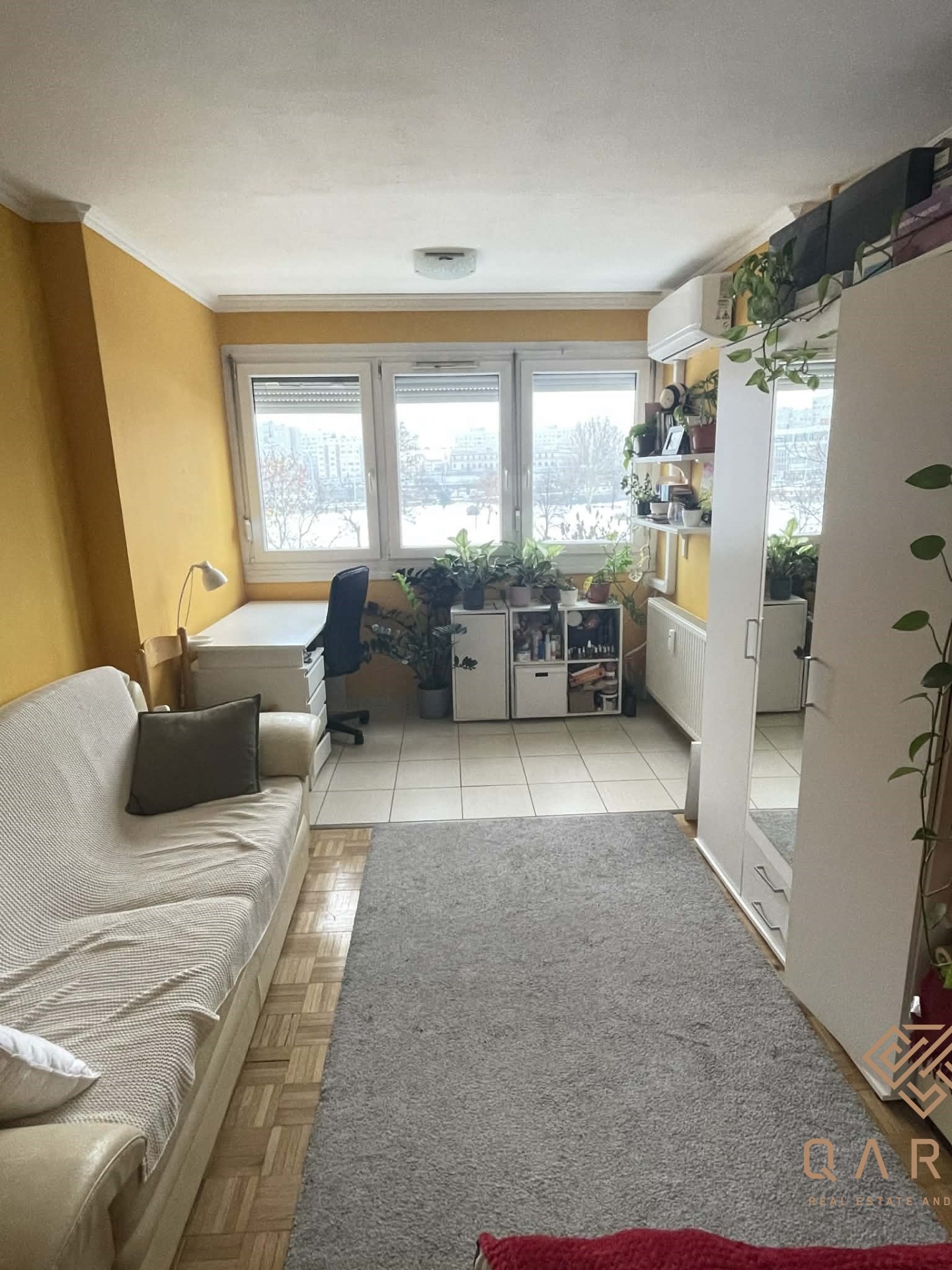 Az ingatlanhoz tartozó loggia be lett építve, ezzel bővítve a lakás méretét.