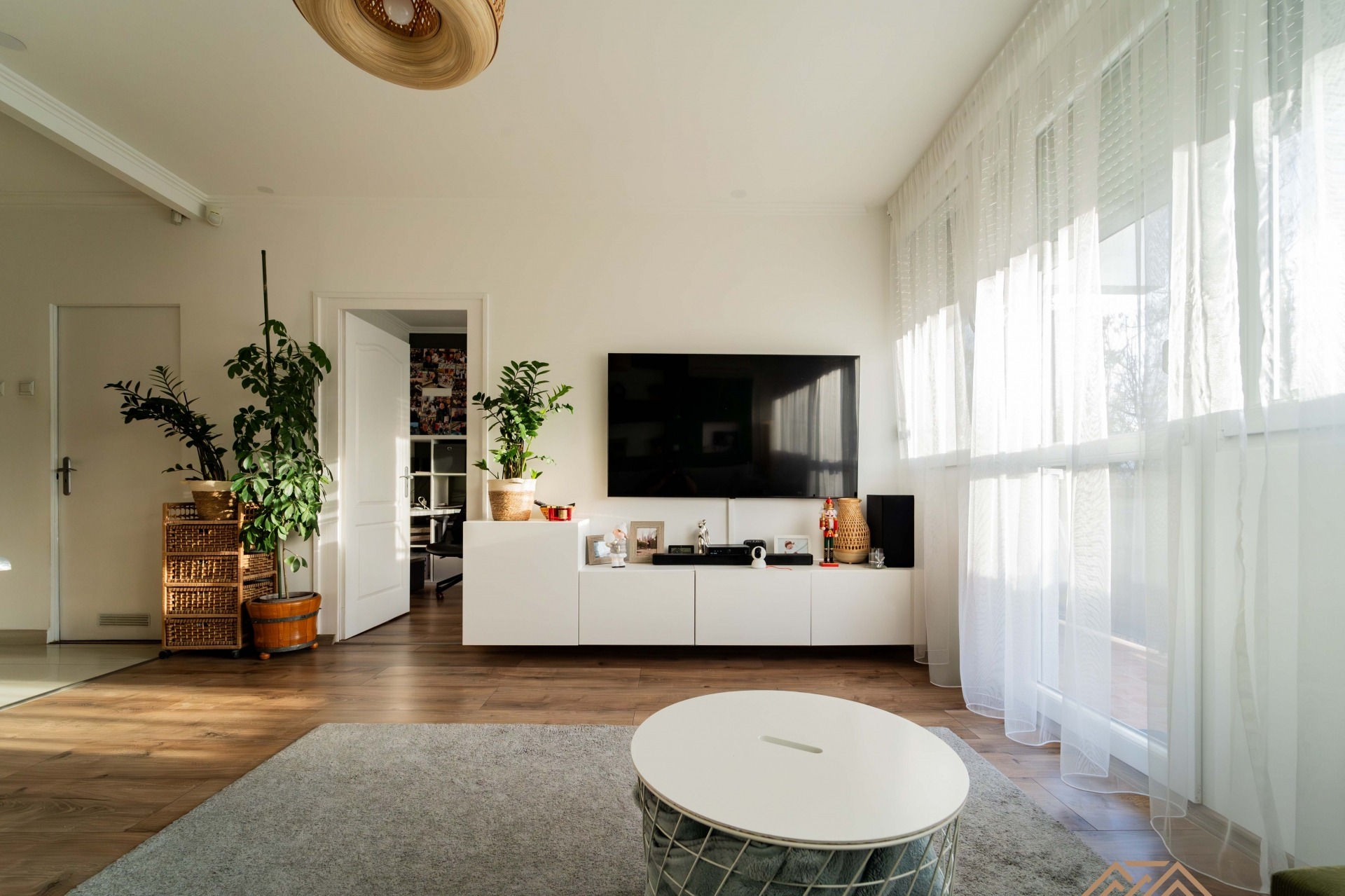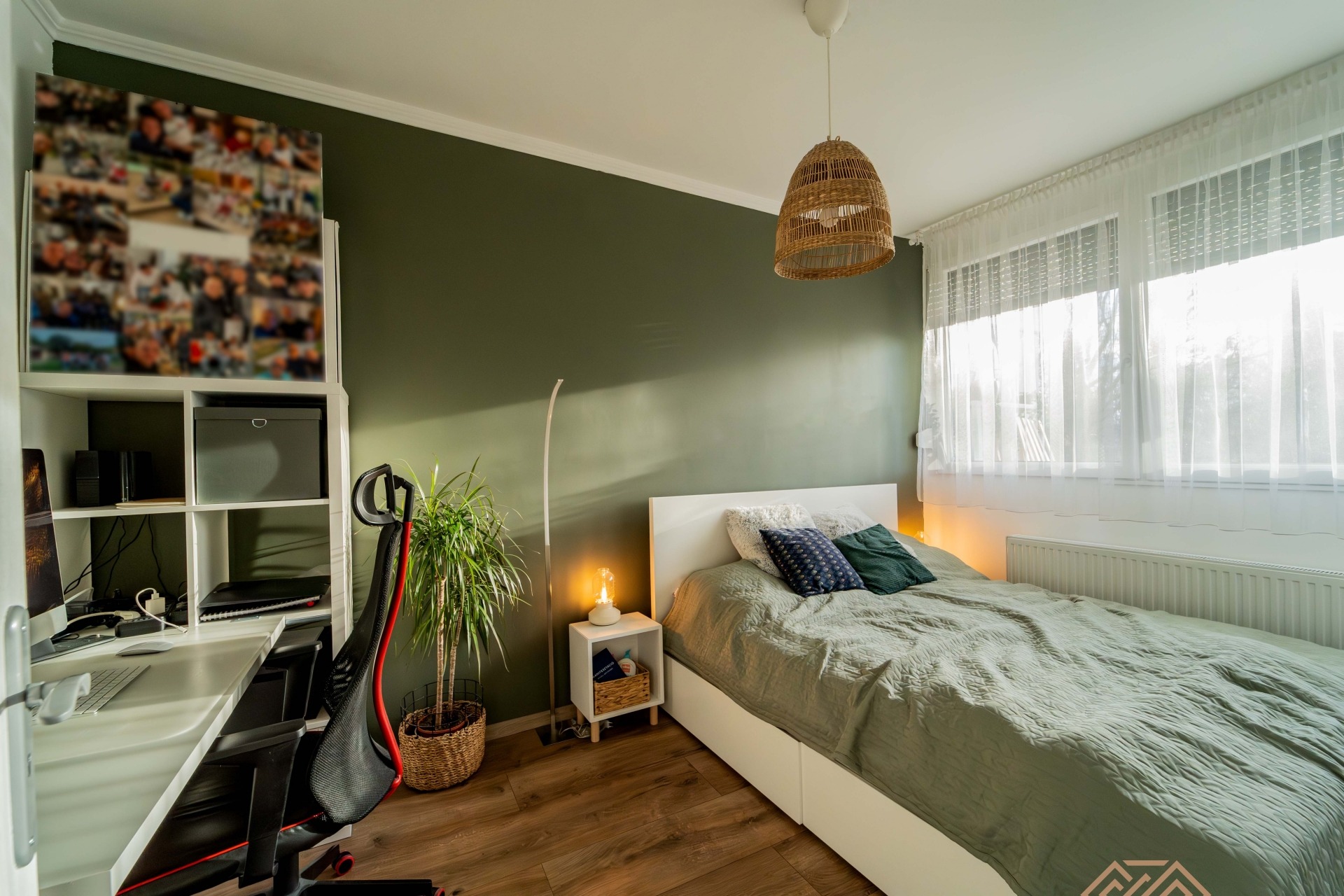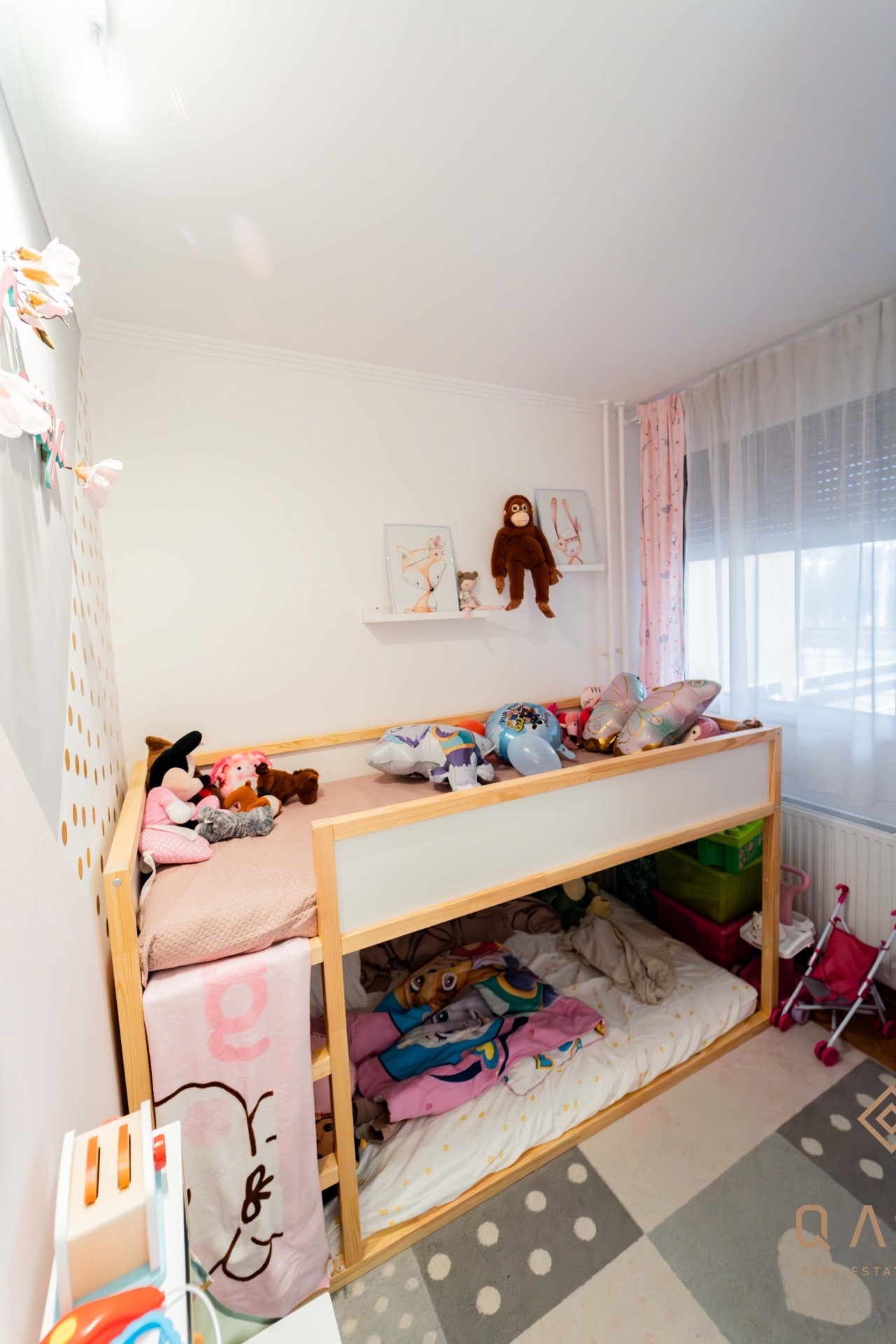 A lakás 3+1 fél szobássá lett át alakítva az egyik szobája ketté lett választva, így lett egy gardrób és egy kis gyerek szoba is.